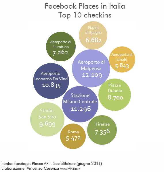Quindi dei 4mln di utenti italiani che accedono a Facebook tramite dispositivo mobile, molti usano anche Places. Guardando queste top ten e confrontandole con le stesse su 4sq, si vede proprio che su quest’ultimo ci sono meno checkin.